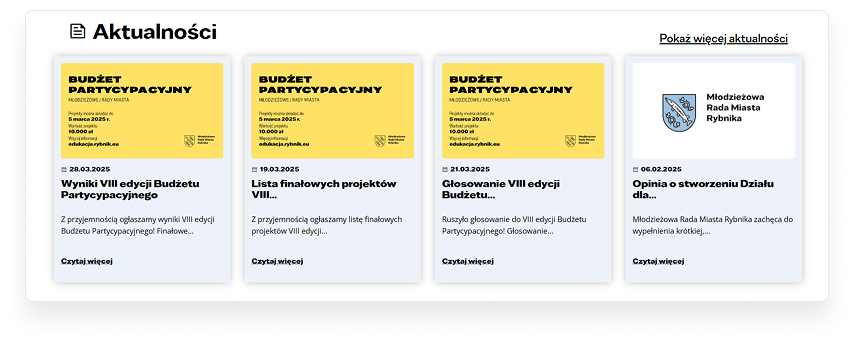 - Elektroniczna rejestracja kandydatów - platforma może zostać skonfigurowana do obsługi procesu naboru kandydatów do Młodzieżowej Rady Miasta. Umożliwia stworzenie dedykowanych formularzy zgłoszeniowych online, gdzie kandydaci mogą przedstawić swoje sylwetki, programy oraz wygenerować plakat wyborczy.